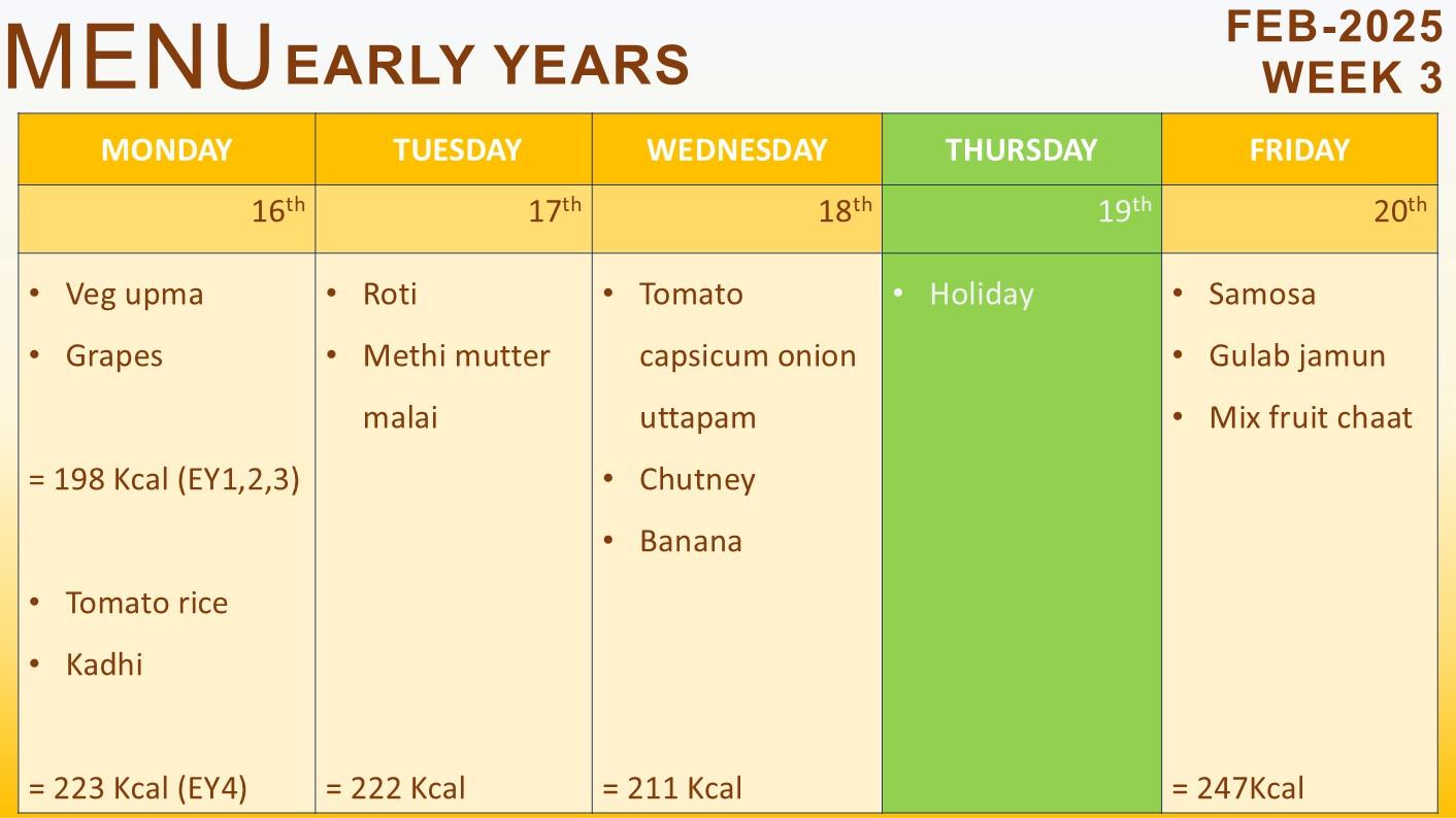 Kindly check the day-wise menu mentioned below: